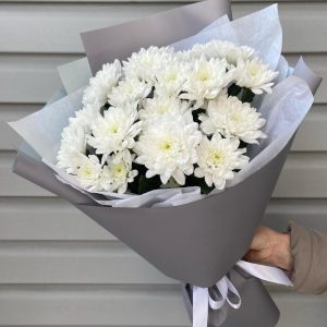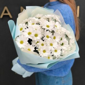 ≈ 101 белая ромашка – 11 веток хризантем с оформлением