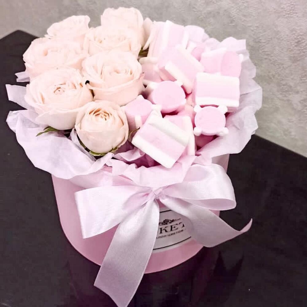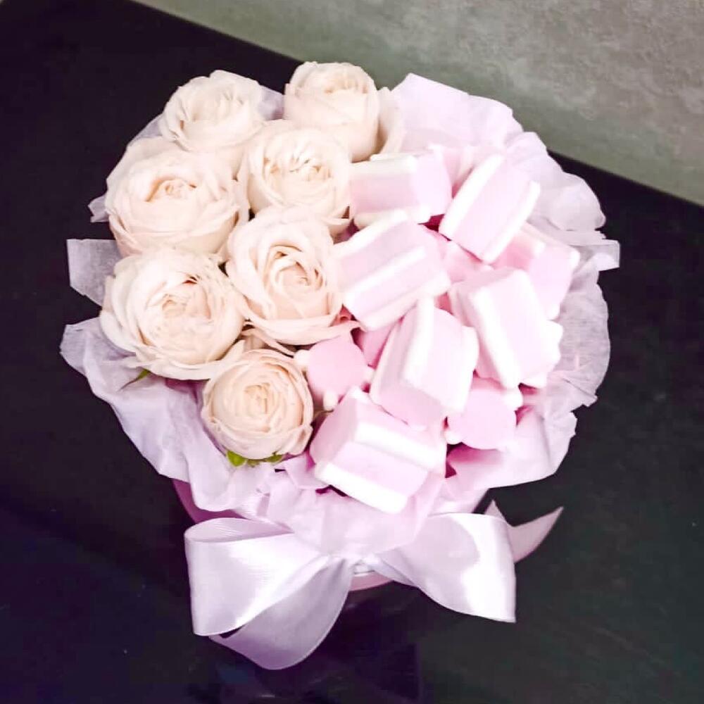 🌸 Розы и маршмеллоу в шляпной коробке в Марксе